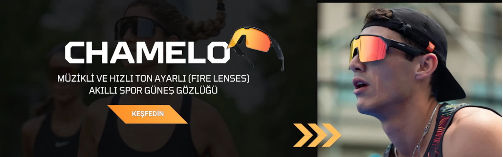 Müzikli ve Hızlı Ton Ayarlı (Fire Lenses) Akıllı Spor Güneş Gözlüğü - Mat Siyah/Ateş Kırmız | Chamelo
