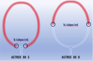 Çerçevesinin bütünüyle esnek olması ile ASTROX-88 S'de tüy topun (shuttlecock) doğru kontrolü sağlanırken, bu kez çerçevesinin sadece üst kısmının esnekliği sayesinde ASTROX-88 D, rakibin üstesinden gelebilmek için, tüy topa azami gücün iletimini sağlamaktadır. Buna ilaveten, boydan 5mm daha uzun olması ile 88 S hassasiyet ve gücü artırırken 88 D ise 10mm'lik daha uzunluğu sayesinde güçlü ataklar geliştirmektedir.
