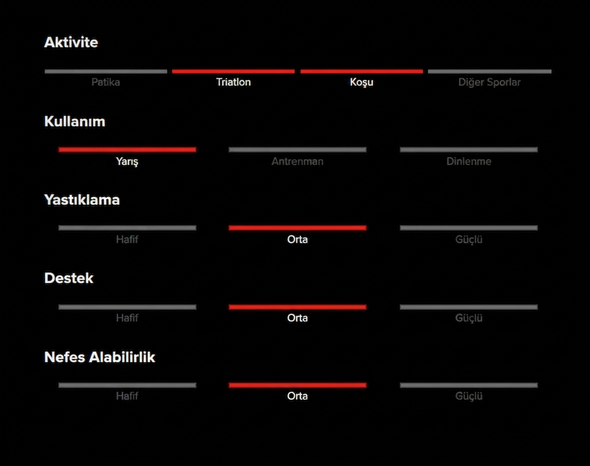 Anatomik yapısı ve kullanılan teknolojiler doğrudan yol koşularının zorluklarına odaklanırken, düşük kesimi sayesinde aşırı ısınma asla bir sorun teşkil etmez. Arkadaki ergonomik dil, konfor ve şık bir dokunuş katar; olur da bir gün dışarı koşuya çıktığınızı unutursanız, branş ismi iç kısma gizlice işlenmiştir. Klasik tasarımı performans genlerimize bir göndermedir; böylece size sadece bir sonraki kişisel rekorunuzu (PB) hedeflemek kalır.
